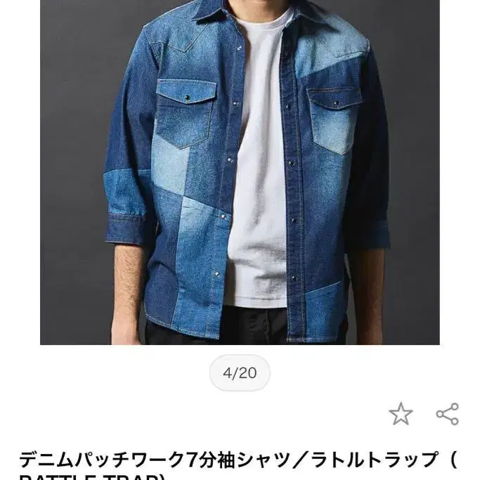 패치워크 디자인의 7부 소매 데님 셔츠. - 브랜드: RATTLE TRAP - 스타일: 데님 셔츠 - 소매 길이: 7부 소매 - 디자인: 패치워크 - 포켓: 가슴 포켓 있음 방문해 주셔서 감사합니다.