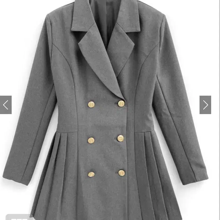 더블 브레스트 디자인의 그레이 코트, 골드 컬러 버튼이 악센트. - 색상: 그레이 - 디자인: 더블 브레스트 - 장식: 골드 컬러 버튼 - 스타일: 플리츠 스커트 스타일 방문해 주셔서 감사합니다.