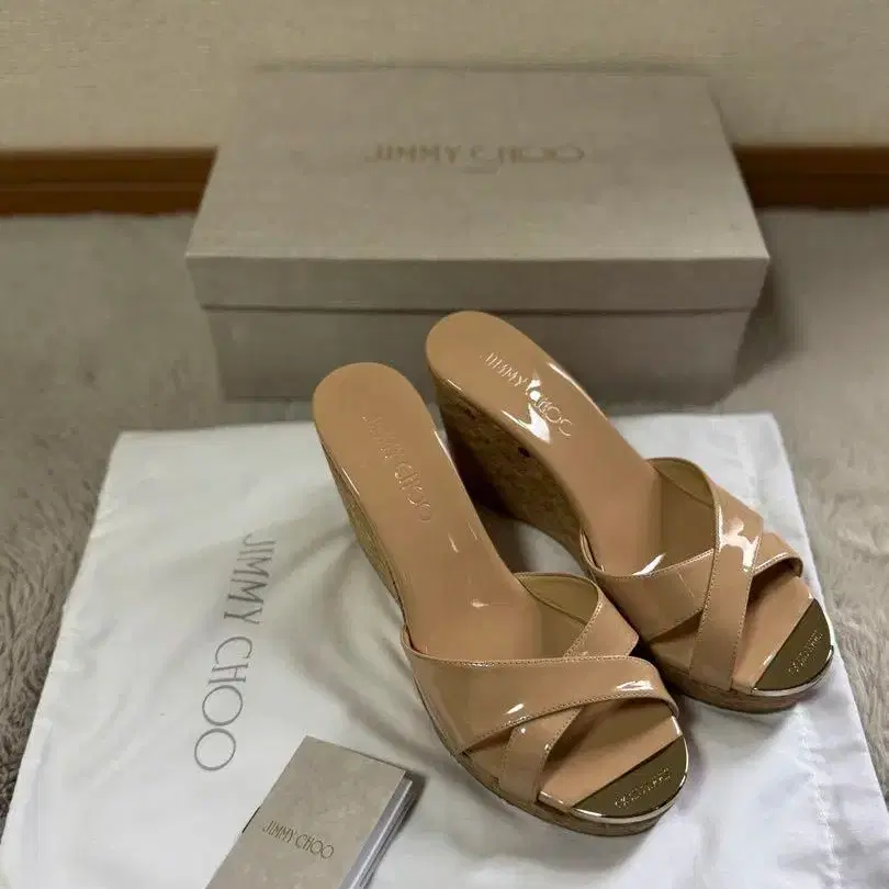 • 지미추 베이지 오픈토 하이힐 37 샌들