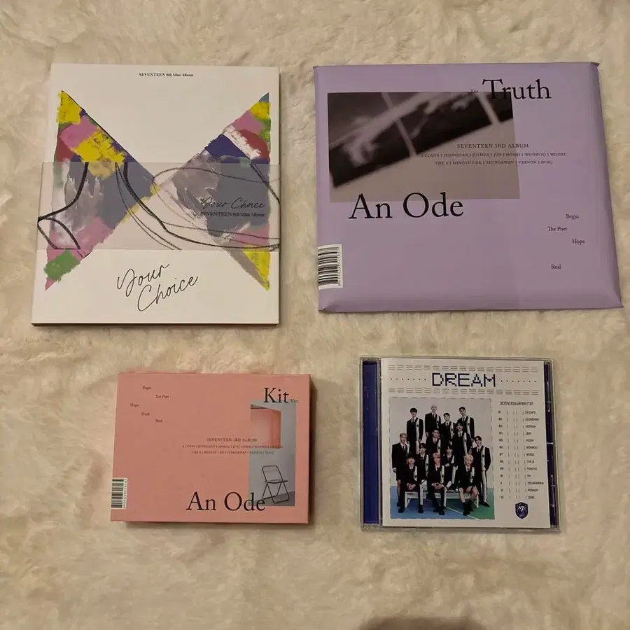 SEVENTEEN 앨범 묶음 판매입니다! 원하시는 조합이 있으시면 말씀해 주세요! ・SEVENTEEN 8th 앨범 ・SEVENTEEN 3RD ALBUM An Ode ver. Truth 정한 ・SEVENTEEN 3RD ALBUM An Ode Kit ver. ・DREAM 즉시 구매⭕️ 방수 가공⭕️ 눈에 띄는 흠집❌ 궁금한 점이 있으시면 언제든지 댓글로 문의해 주세요! °・*:.