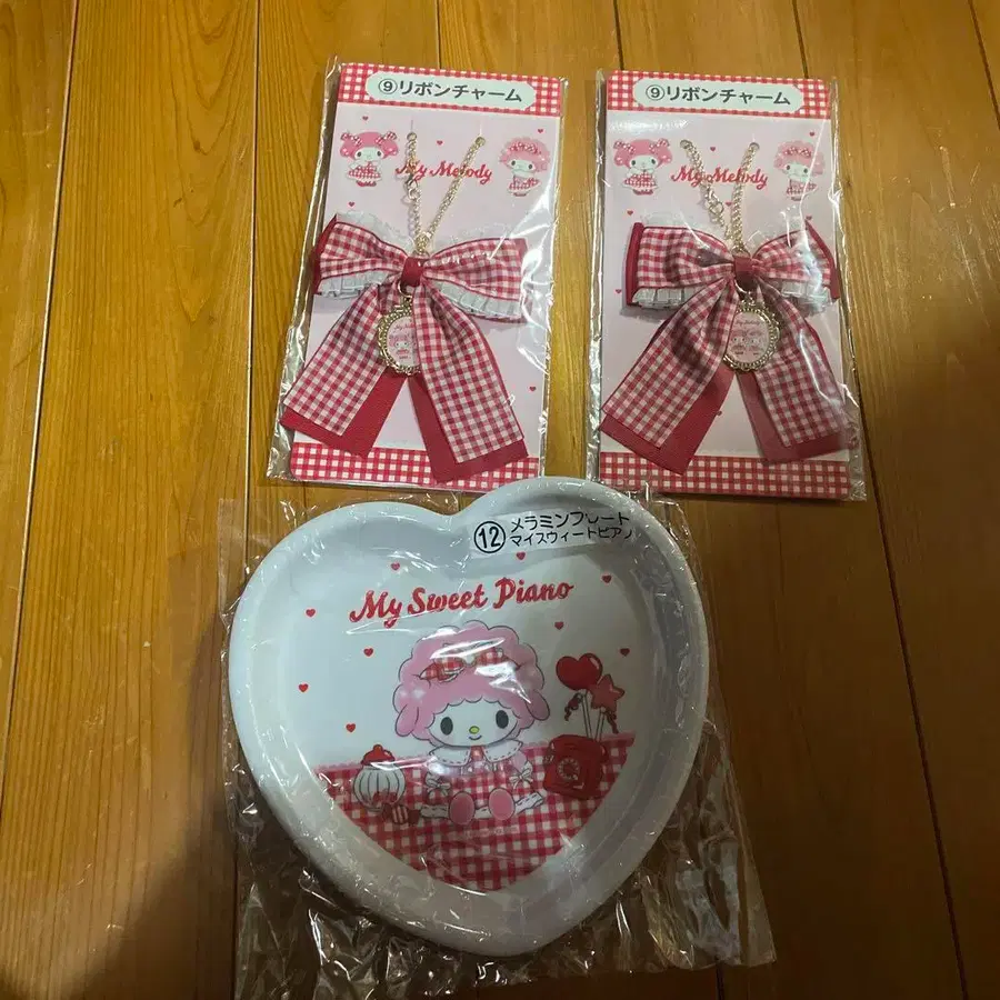 산리오 복권 마이멜로디 하트형 플레이트와 리본 참 세트