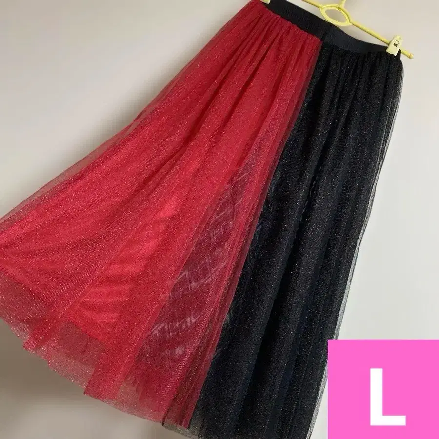할리 퀸 롱 스커트 블랙 레드 블랙 레드 튤 라메 L