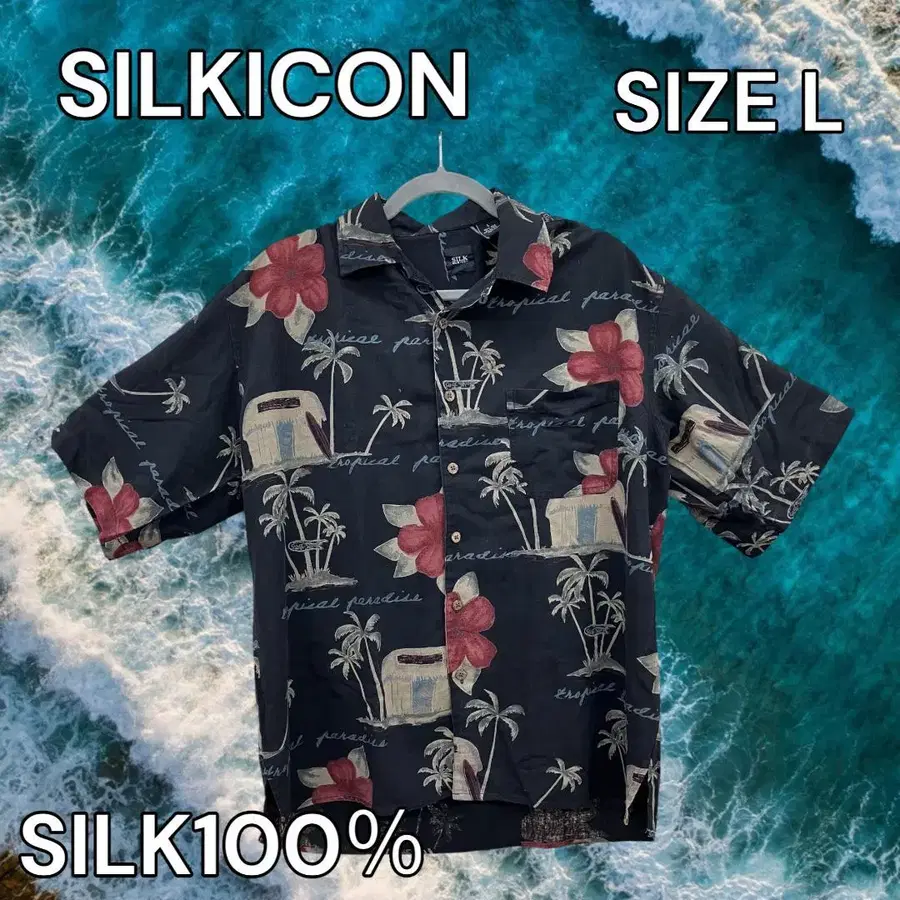 SILK ICON 알로하 셔츠 L 사이즈 100% 실크 1380-502