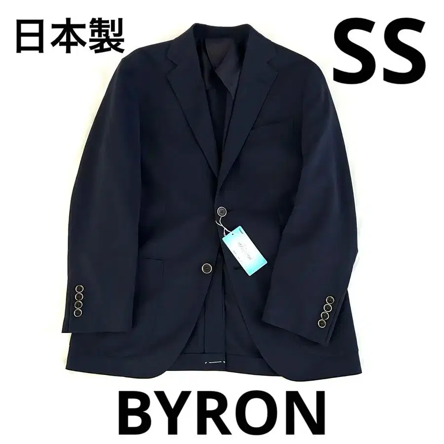 네이비 색상의 테일러드 자켓, 2버튼, 프론트 포켓 부착.