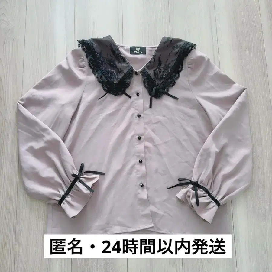 ROJITA 리본 포함 배색 레이스 카라 긴팔 핑크