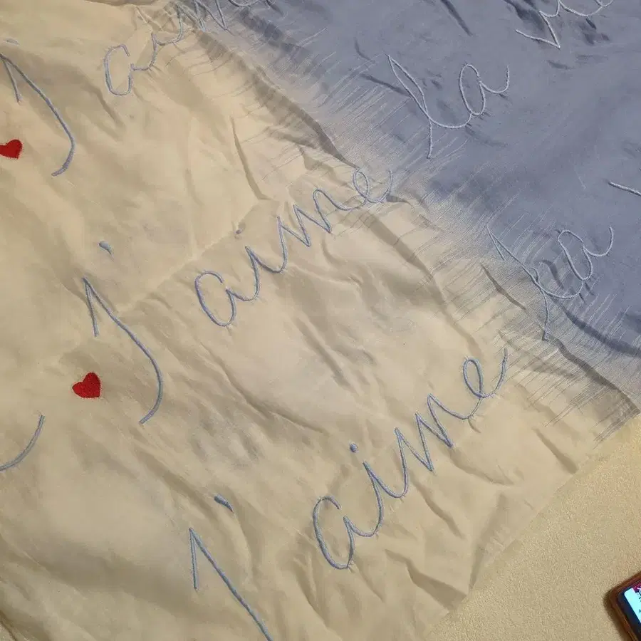 파랑과 화이트의 그라데이션에 [ J'aime la vie ] 자수, 빨간 하트가 악센트인 대형 스톨. - 디자인: 파랑과 화이트의 그라데이션에 자수된 [ J'aime la vie ] 텍스트 - 하트: 빨간 하트 자수가 2개 있음 - 소재: 가벼운 원단 - 사이즈: 대형 스톨 수년 전 상품을 상자째 보관하고 있었습니다. 접힌 자국은 있지만 틀림없이 미사용 새상품입니다. 상자에 약간의 찍힘이 있지만, 원하시면 박스 포함으로 보내드립니다. 원치 않으시면 부직포로 싸서 보내드립니다. 일본 니혼바시 미츠코시 본점에서 구매했으며, 정확한 기억은 아니지만 1만 엔 이상이었던 것 같습니다. 질문 등 편하게 문의해 주세요. 방문해 주셔서 감사합니다. 잘 부탁드립니다.