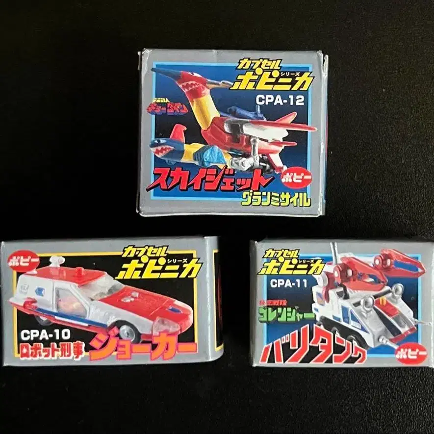 캡슐 포피니카 3개 세트 *바리 탱크(고렌저) *스카이 제트(쿄다인) *조커(로봇 형사) 봉지 내부는 미개봉입니다. 상자는 시간의 흐름에 따른 데미지가 있습니다. 컬렉션 정리를 위해 판매합니다. #바리 탱크 #스카이 제트 #조커 #로봇 형사 #쿄다인 #고렌저