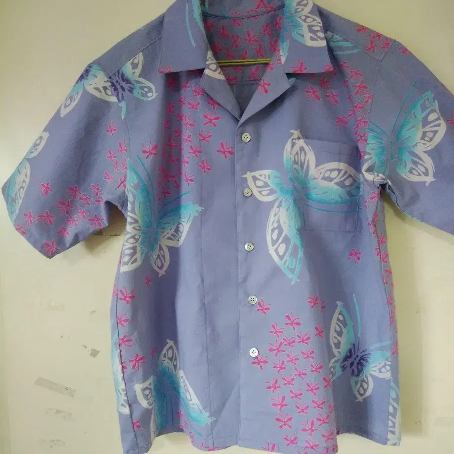 옷감 유카타 리메이크 연보라 나비 무늬 알로하 셔츠