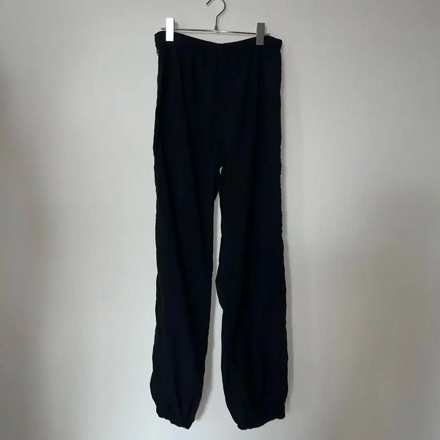 사이즈 표기 : M 소재 : 100% 나일론 생산국 : 방글라데시 색상 : 블랙 허리 : 40cm (허리 밴딩 있음) 가랑이 길이 : 38cm 바지 길이 : 77.5cm 다리 폭 : 32cm 밑단 폭 : 17cm 컨디션 : 눈에 띄는 흠집이나 얼룩 없음