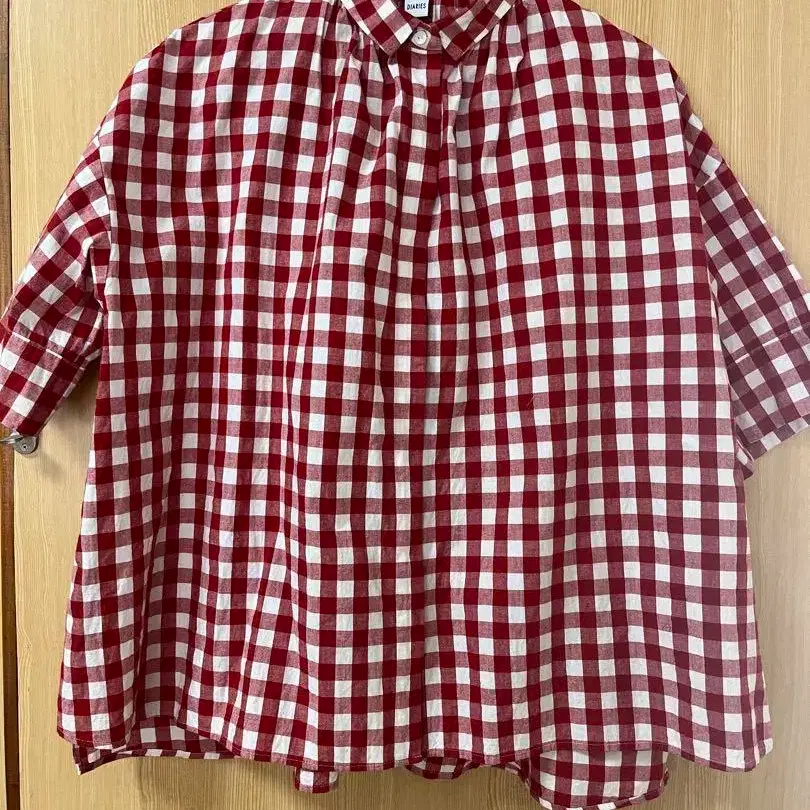 빨간색과 흰색의 체크 무늬 반소매 셔츠, 버튼 다운 칼라로 루즈한 핏감. - 브랜드: DIARIES - 색상: 빨간색과 흰색 체크 - 스타일: 반소매 셔츠 - 디자인: 체크 무늬 - 칼라 스타일: 버튼 다운 - 사이즈: 루즈한 핏감 방문해 주셔서 감사합니다.