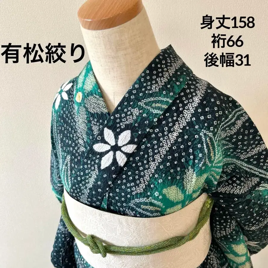 아리마츠 시로미 미사용 그린 노랑 꽃무늬 재봉실 포함