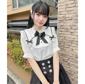 • 현행 모델 잉게보그 로고pt. 리본 타이 블라우스 블랙 새상품급