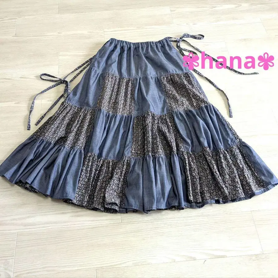핸드메이드 롱 스커트 레트로 꽃무늬 티어드 롱 스커트