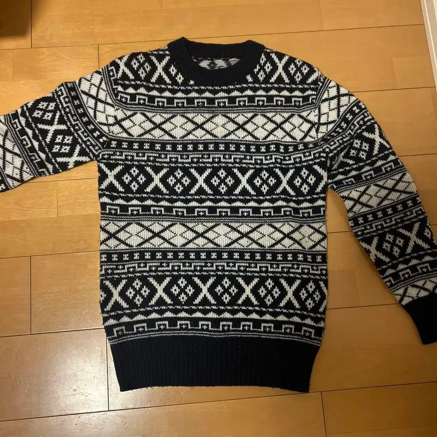 네이비 화이트 기하학 패턴 니트 스웨터