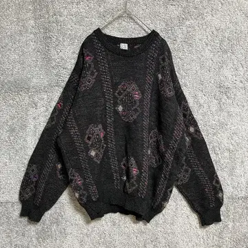 • 빈티지 올 패턴 보더 기하학 무늬 레트로 니트 스웨터