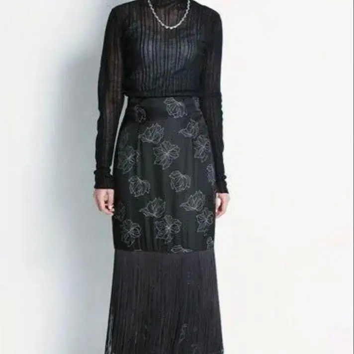 새틴과 프린지가 조화를 이루는 롱 스커트】【디자인/스타일링】은은한 광택이 있는 새틴 자카드에 트렌디한 프린지 디테일을 더한 롱 스커트. 광택이 있는 원단과 시크한 플라워 패턴이 여성스러운 매력을 발산하고, 세로 라인을 강조한 스트레이트 실루엣이 성숙한 느낌을 더합니다. 걸을 때마다 흔들리는 프린지가 여성스럽고, 사이드에 들어간 슬릿이 다리 라인을 우아하게 연출합니다. 무게감 있는 앞으로의 옷차림에 변화를 가져다주는 품격 있는 아이템입니다. 【Fabric】광택이 있는 새틴 원단을 사용했습니다. 사이트 인용 사이즈 표기 1 M 상당 ✴︎평평하게 놓았을 때 사이즈 측정 스커트 기장 86/허리 31/힙 36 정가