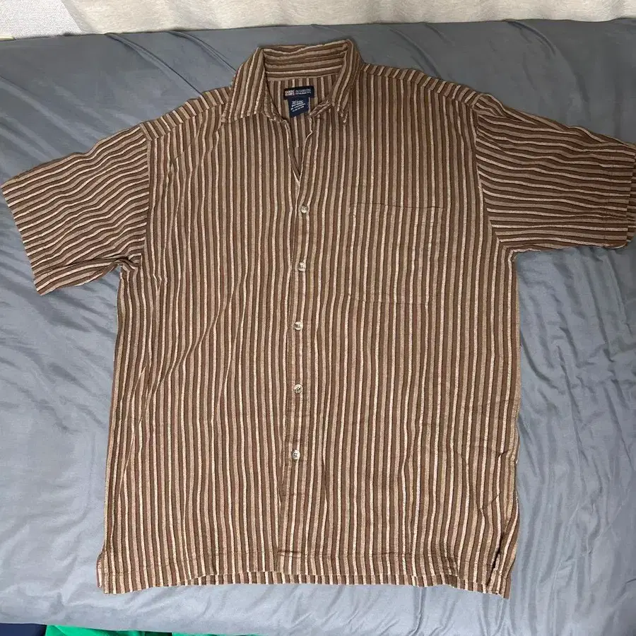 브라운과 화이트 스트라이프 반팔 셔츠, 100% 코튼 소재로 쾌적한 착용감. - 브랜드: Faded Glory - 색상: 브라운과 화이트 스트라이프 - 사이즈: L - 소재: 100% 코튼 - 디자인: 반팔 셔츠 - 포켓: 가슴 포켓 있음 방문해 주셔서 감사합니다.