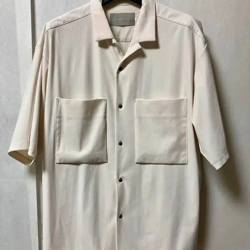CURLY 반팔 셔츠 오픈 카라 셔츠 화이트