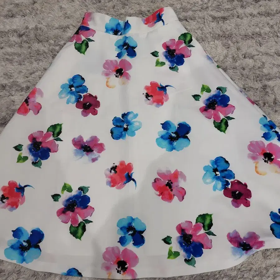 화이트 바탕에 컬러풀한 플라워 무늬의 플레어 스커트, 지퍼로 탈부착이 간편합니다. - 색상: 화이트에 컬러풀한 플라워 무늬 - 스타일: 플레어 스커트 - 지퍼: 뒷면 지퍼 앙데팡당 사이즈 36 허리 31㎝, 총길이 72㎝ 방문해 주셔서 감사합니다.