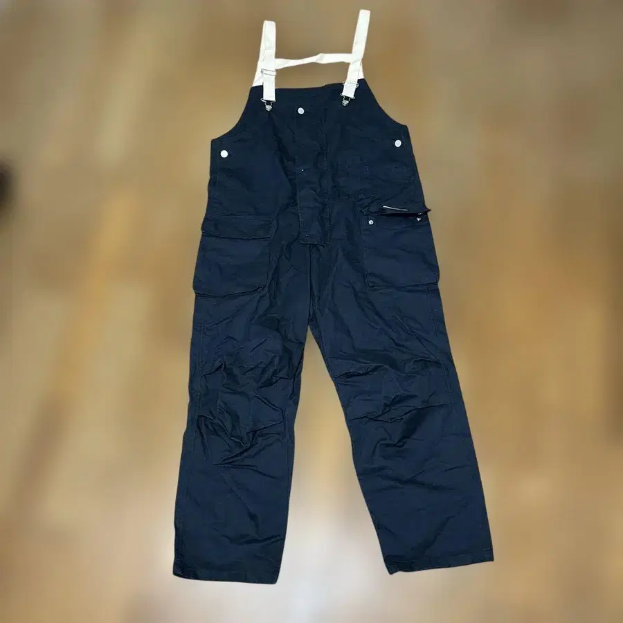 네이비 색상의 오버롤로, 여러 개의 포켓이 부착되어 기능성이 뛰어납니다. - 색상: 네이비 - 디자인: 오버롤 - 소재: 나일론 또는 폴리에스테르(추정) - 포켓: 여러 개의 포켓 부착 방문해 주셔서 감사합니다.