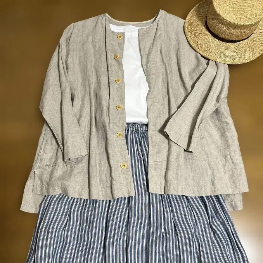 새상품급 엠즈 그레이시 노카라 자켓 리본 린넨 세레모니 38