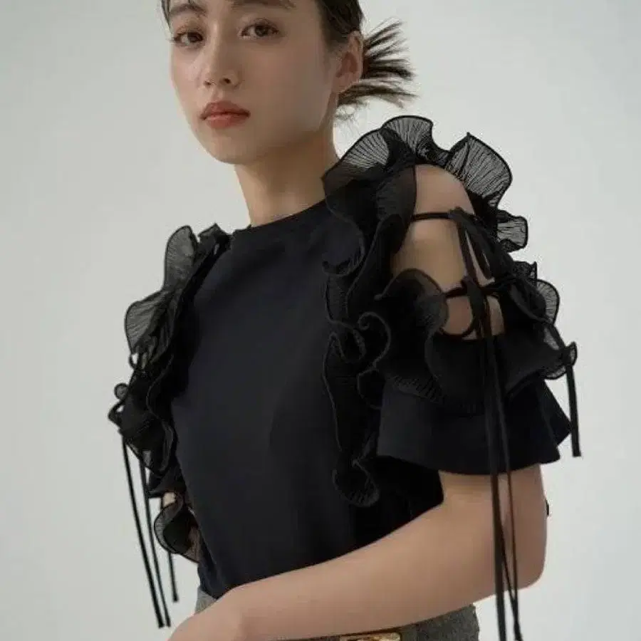 snidel 프릴 슬리브 컷 풀오버 (BLK)
