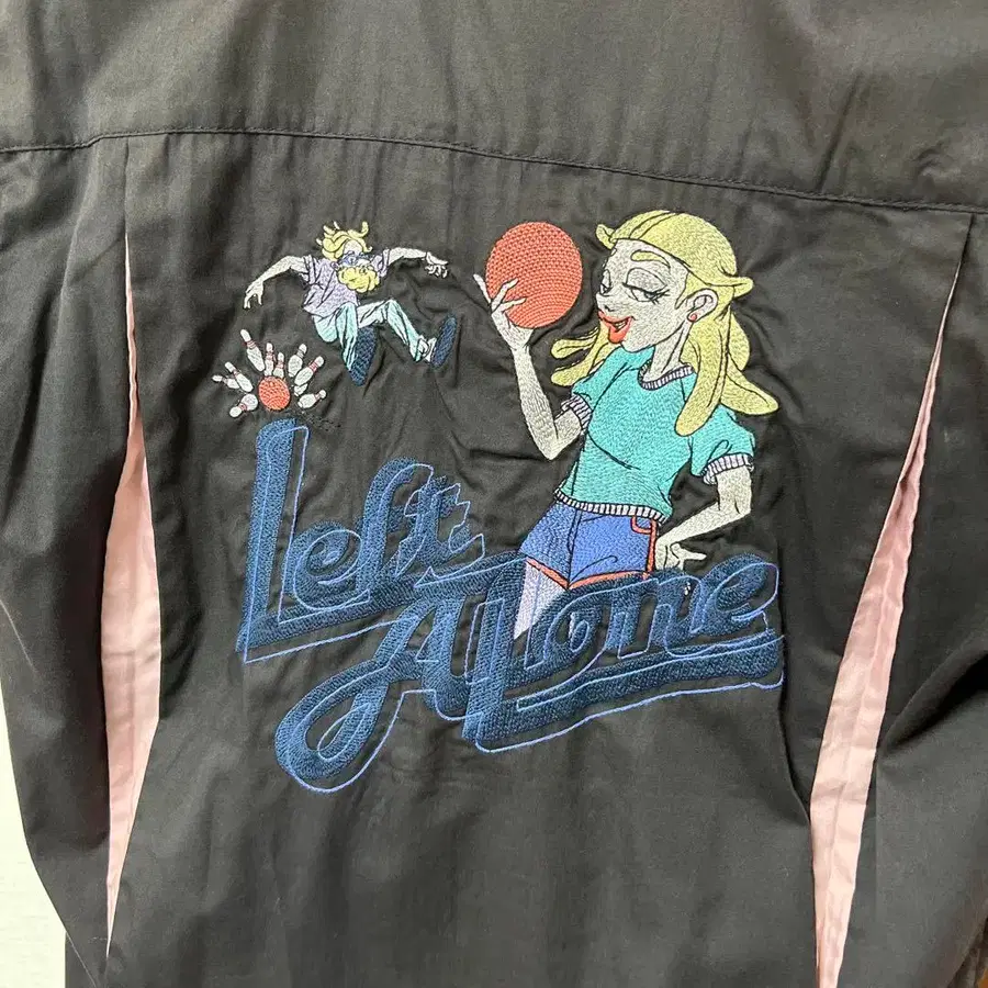 left alone 레프트 얼론 반팔 자수 오픈 카라 셔츠