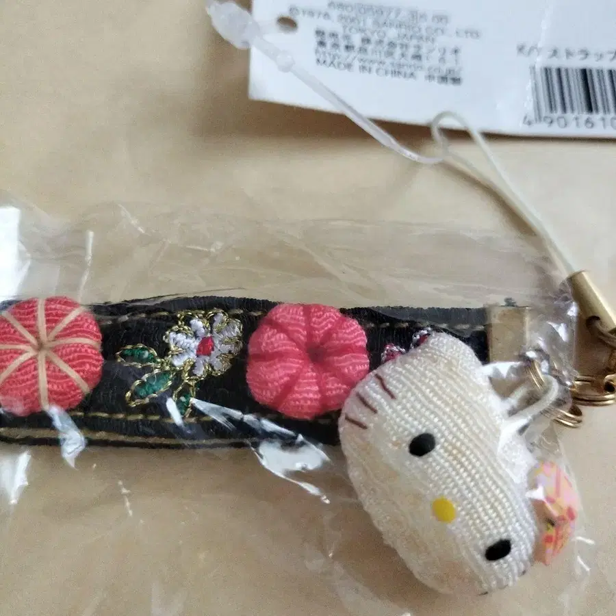 산리오 헬로키티 자수 스트랩 2001 초레어 크레이프 원단
