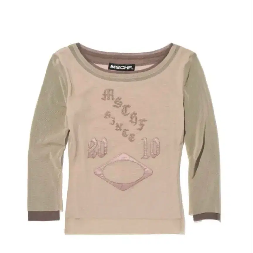 MSCHF 자수 장식 5부 소매 티셔츠 베이지
