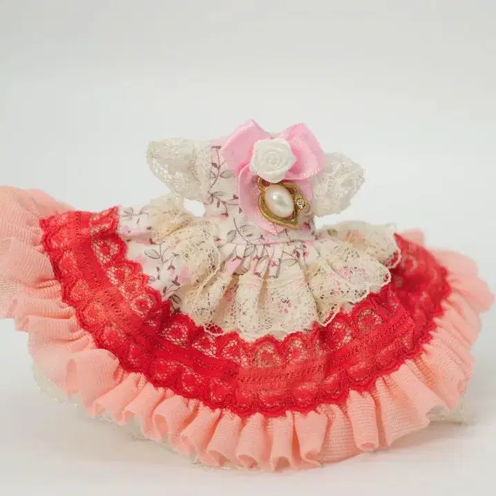 1/12 사이즈 드레스 아마무스 OB11 빨간색/흰색 아마무스 등의 1/12 사이즈 드레스입니다. 뒷면에 후크가 있어 입기 쉽습니다.