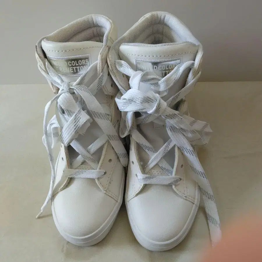 방문해 주셔서 감사합니다. 화이트 하이컷 스니커즈, 통기성이 좋은 메쉬 인솔 포함. - 브랜드: United Colors of Benetton - 컬러 : 화이트 - 스타일: 하이컷 - 밑창: 러버 솔 - 인솔: 메쉬 인솔 - 사이즈: 23㎝ 구매 시기 불명 사용 빈도는 적다고 생각합니다. (횟수는 모르겠습니다.) 중고품이라는 점을 양해하실 수 있는 분만 구매 부탁드립니다. 양해 부탁드립니다. 색상...화이트 계열