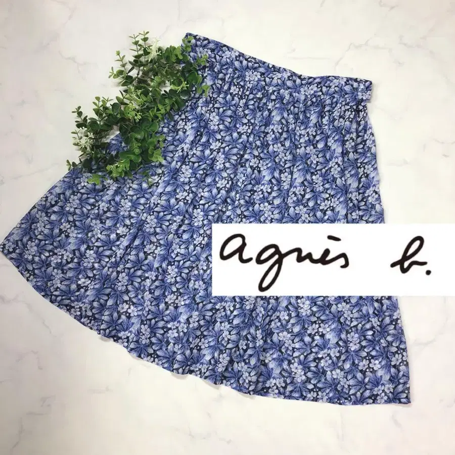 agnes b. 에네스베의 비침이 있는 블루 꽃무늬 스커트 40