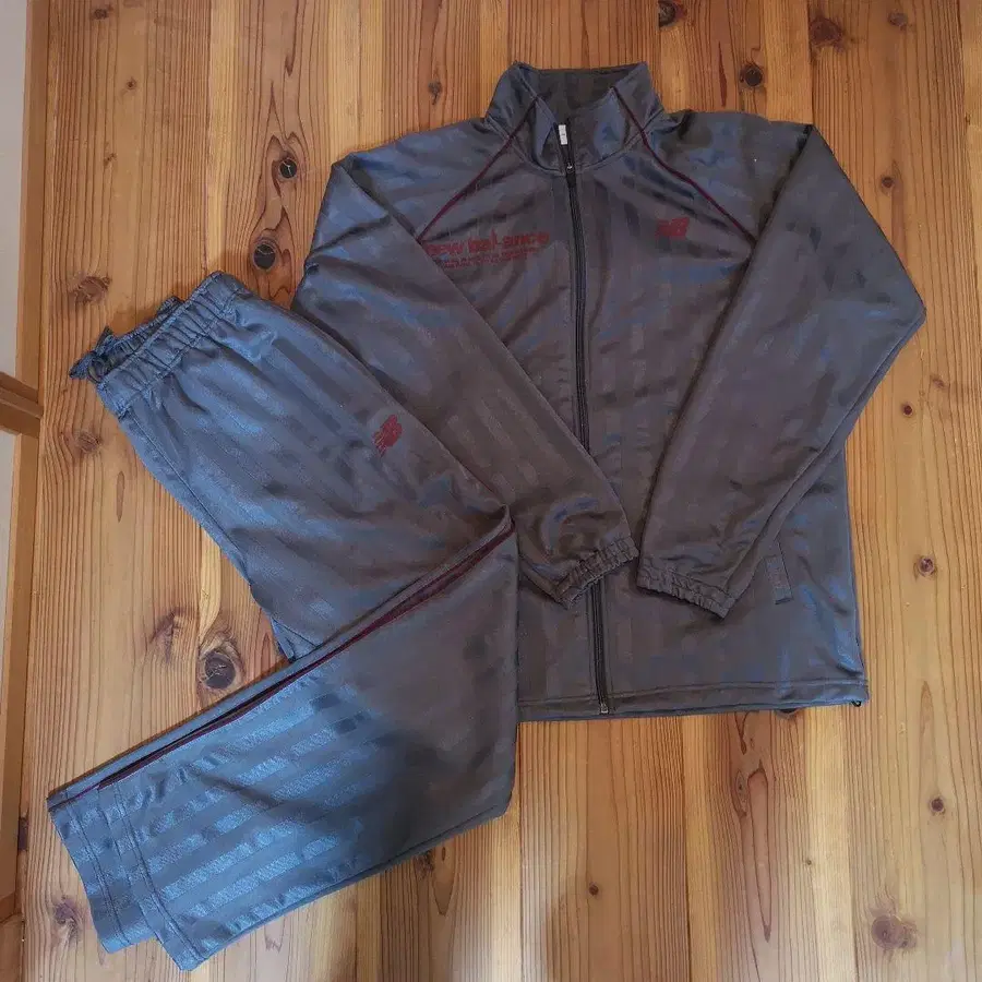 뉴발란스, 그레이 스트라이프 무늬의 LL 사이즈 집업 자켓과 팬츠 세트. - 색상: 그레이 - 디자인: 집업 자켓과 팬츠 세트 - 특징: 스트라이프 무늬 - 사이즈: LL 사이즈 왼쪽 무릎에 닳은 자국이 있지만, 비교적 깨끗한 편입니다. 9번째 방문해 주셔서 감사합니다.