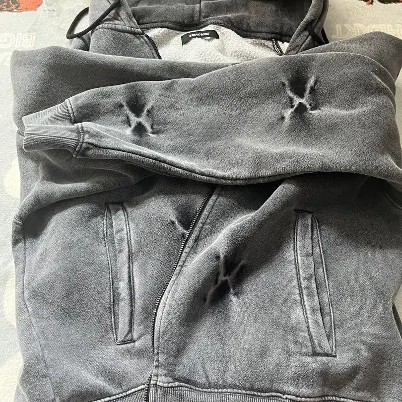 SWAGVIBE 핀치드 다이 지퍼 후드 집업