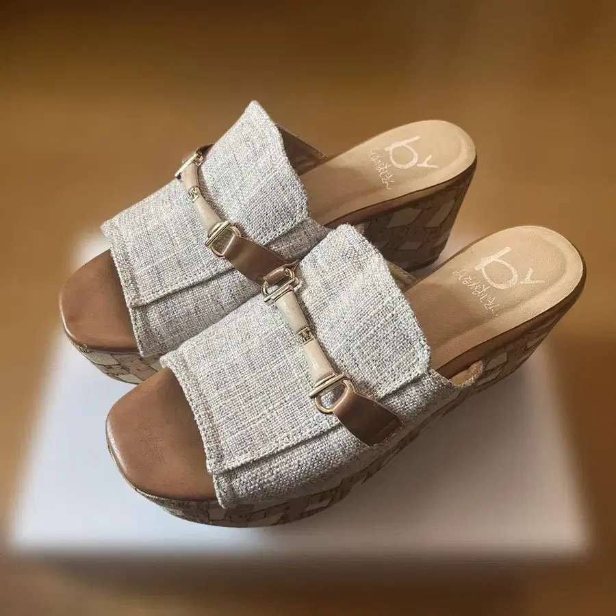 • 비쥬 장식 베이지 웨지 샌들 르 탈론