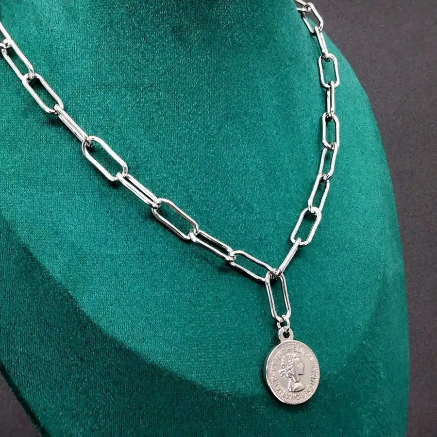 빈티지 코인 체인 목걸이 실버 숏 레트로
