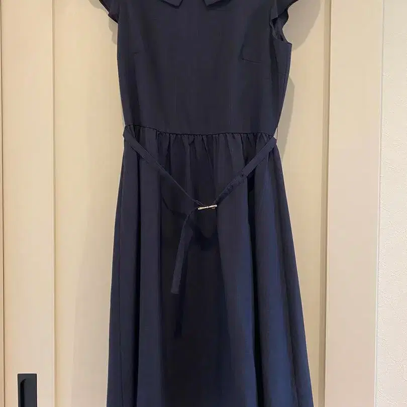 네이비 반팔 무릎 기장 원피스