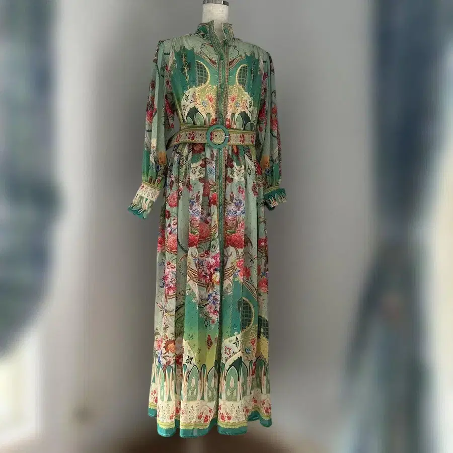 그린 컬러의 플로럴 패턴 롱 드레스, 버튼이 달린 하이 칼라 디자인, 동일 컬러의 벨트 포함. - 색상: 그린 컬러와 플로럴 패턴 - 디자인: 버튼이 달린 하이 칼라 디자인 - 벨트: 동일 컬러의 벨트 포함 - 스타일: 롱 드레스 - 소매: 긴 소매 쉬폰의 가벼운 원피스입니다. 소매를 접어 입으면 여름에도 OK! 입으면 예쁜 원피스입니다. 신발에 따라 캐주얼하거나 엘레강트하게 입을 수 있는 상품입니다. 미사용품이지만, 택 등은 없습니다. 집에서 관리하고 있으므로 예민하신 분은 삼가 주시기 바랍니다. 프로필을 필독해 주시기 바랍니다. 방문해 주셔서 감사합니다.