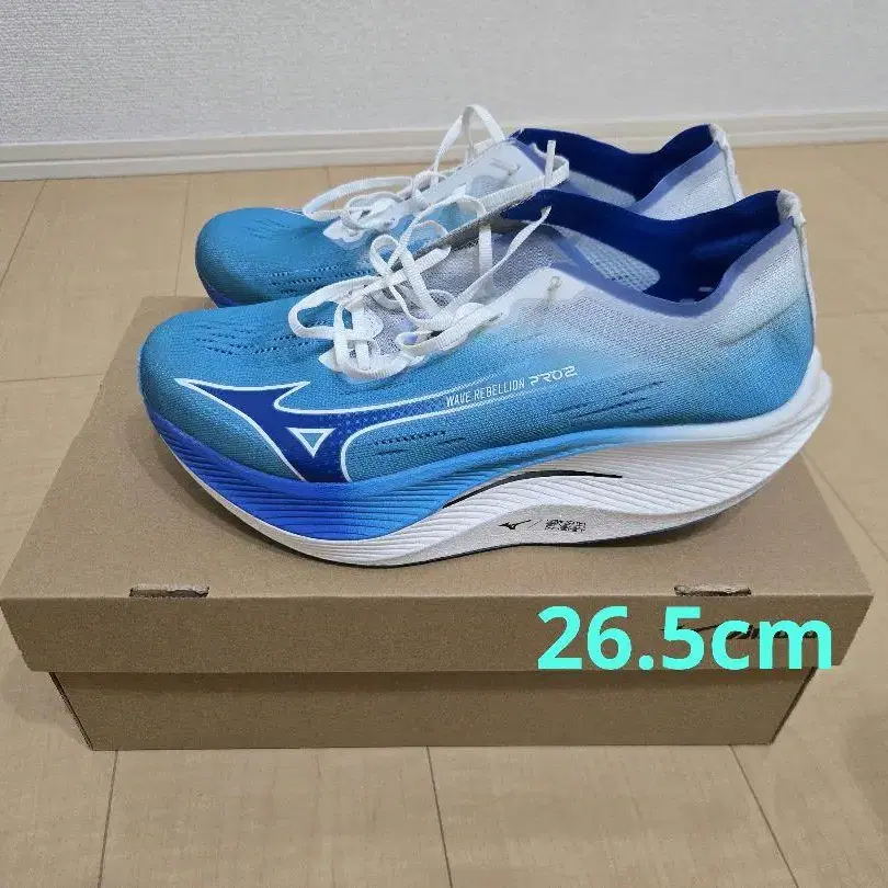 방문해 주셔서 감사합니다. 경량이며 반발력이 뛰어난 디자인으로 장거리 러닝에 최적입니다. 레이스나 스피도 연습에 활용하실 수 있습니다. - 브랜드: 미즈노 - 모델: Wave Rebellion Pro 2 - 컬러: 파랑/화이트 - 사이즈: 26.5cm 사용 거리: 21km 정도 하프 마라톤에 사용했는데, 1km를 4분으로 쉽게 달릴 수 있는 느낌은 있었지만, 제가 원하던 느낌과 맞지 않아 판매하게 되었습니다. 제 사이즈는 26cm이지만, 이 신발은 26.5cm가 딱 맞았습니다. 중고품이므로 사진과 같이 뒷면이 약간 더러워져 있습니다. 이 점 양해 후 구매하시기 바랍니다.