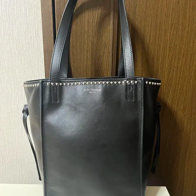 J&M Davidson 스터드 장식 블랙 가죽 토트백