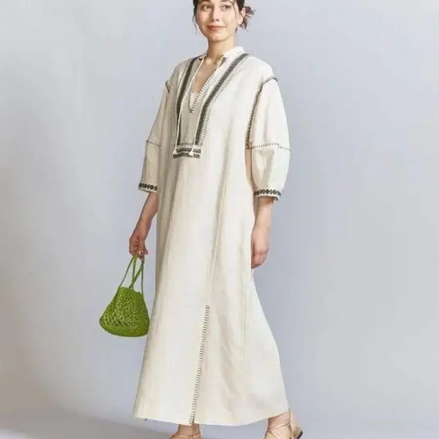 beauty & youth 린넨 에스닉 원피스 아이보리