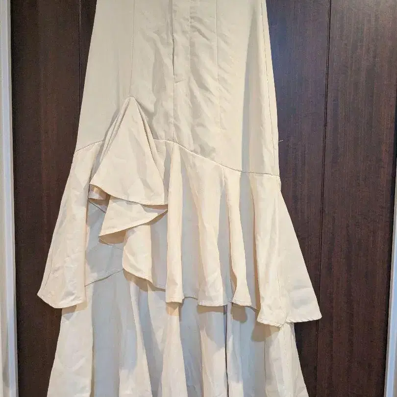 크림색 플레어 스커트, 더블 프릴 디자인으로 엘레강트한 느낌. - 색상: 크림색 - 디자인: 플레어 스커트 - 소재: 코튼 혼방 - 특징: 더블 프릴 디자인 - 허리: 허리밴딩 방문해 주셔서 감사합니다. 구입한 것이 너무 작아서 한 번도 입지 않았습니다. 사이즈는 M이지만, 입어본 느낌은 S에 가깝습니다.