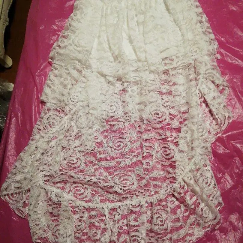 • 플레어 스커트, 허리밴딩, 광택, 고급 블랙 레이스, 리버서블 착용 가능