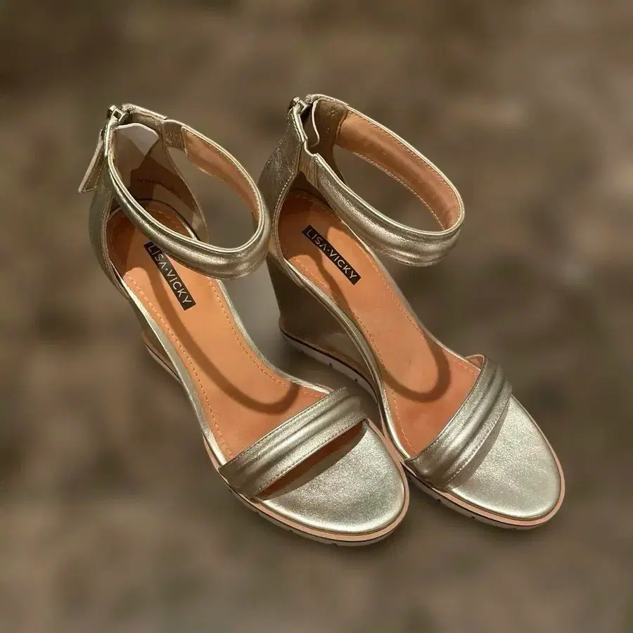 새상품 LISA-VICKY 골드 웨지솔 10cm 24.5