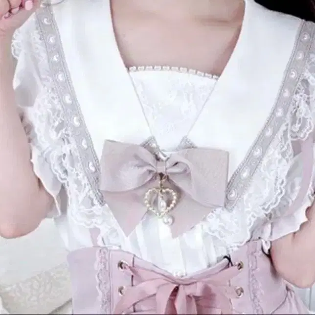 MARS 리본 포함 하트 세일러 블라우스 핑크
