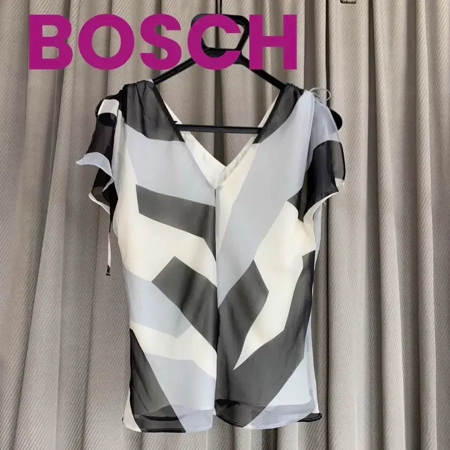 새상품급 BOSCH 보쉬 기하학 패턴 쉬폰 블라우스 소매 프릴 어깨 슬릿