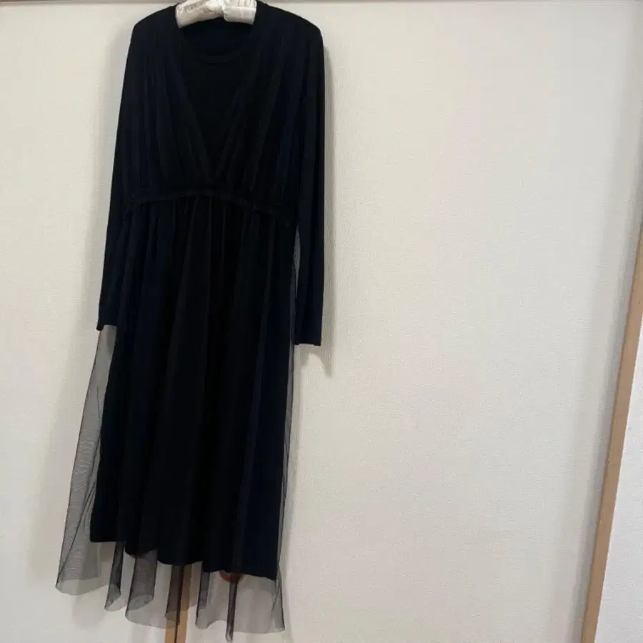 블랙 무지 롱 원피스 U넥 긴팔 마터니티 OK