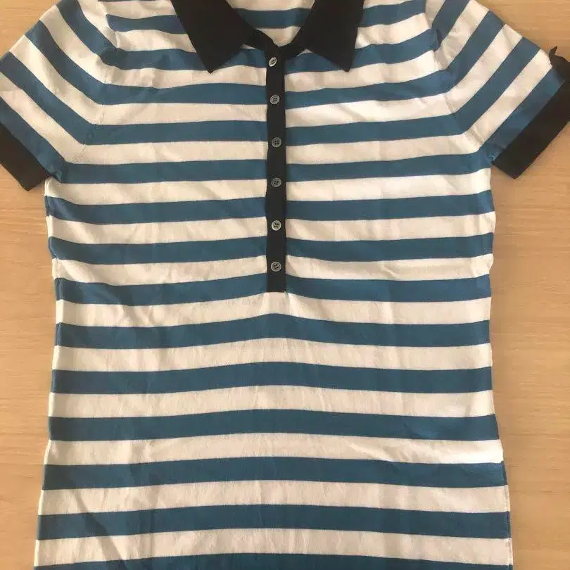 띠어리 럭스의 폴로 니트입니다. 착용은 1~2회, 촉감이 매우 좋습니다. 제 실루엣이 바뀌어서 누군가에게 양보할 수 있다면 기쁠 것 같습니다. 캐주얼하지만 소재가 좋아서 단정해 보입니다. 하프 팬츠와 함께 매치하면 귀여울 것 같습니다. 색상은 3번째 사진이 가장 비슷합니다. 개인 측정으로 가슴 너비는 약 41cm, 기장은 약 58cm입니다. 니트 소재로 신축성이 있습니다. 소재 레이온 85%, 폴리에스테르 15 사이즈 38(M 정도) 디자인 보더, 폴로 니트 색상 블루, 화이트 보더, 칼라, 소매 끝은 네이비 방문해 주셔서 감사합니다.