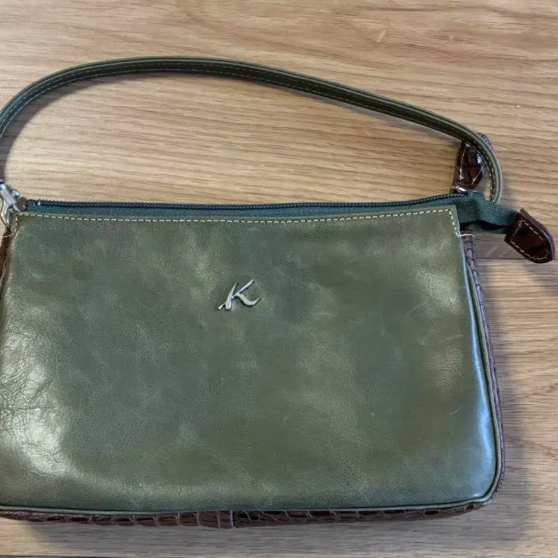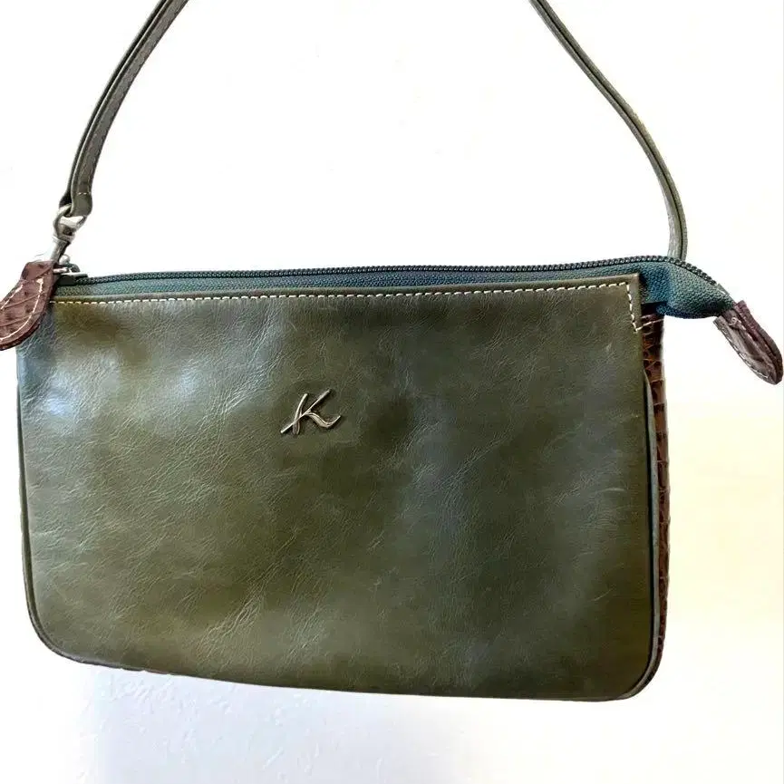 키타무라 올리브 그린 가죽 숄더 백 핸드백 천연 가죽