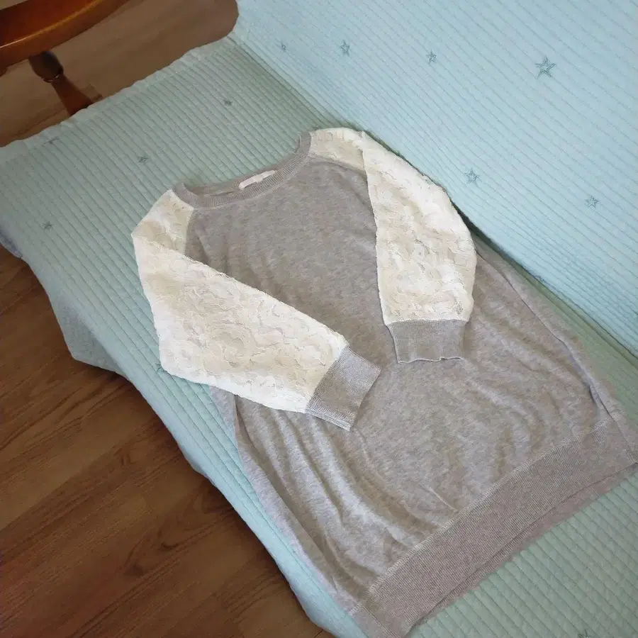 [ 새상품급 ] 7부 소매 밑단 레이스 튜닉/스모크 네이비 컬러